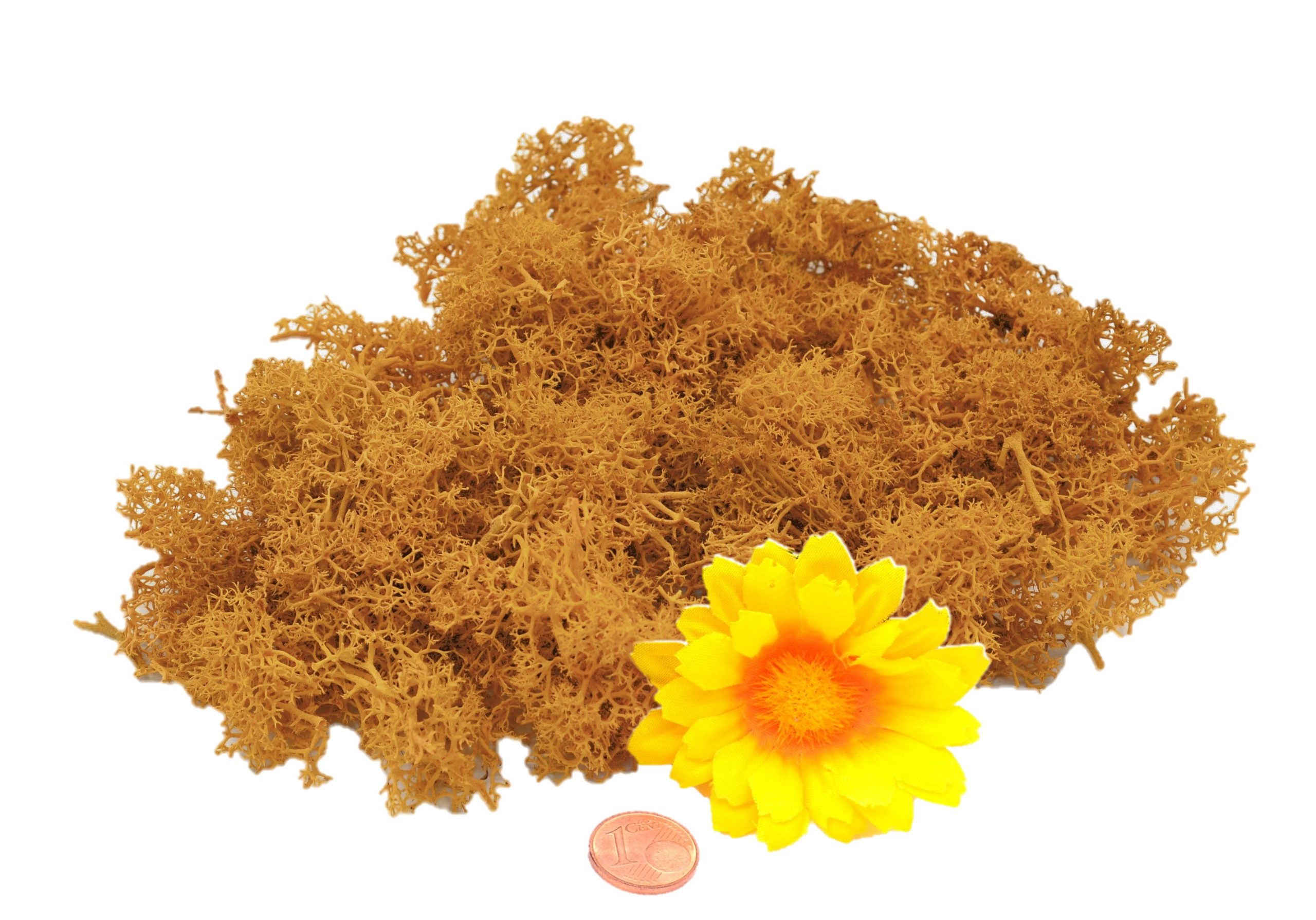 Muwse Islandmoos Melonengelb händisch gerupft, gefärbt, präpariert und 2-fach handgereinigt.